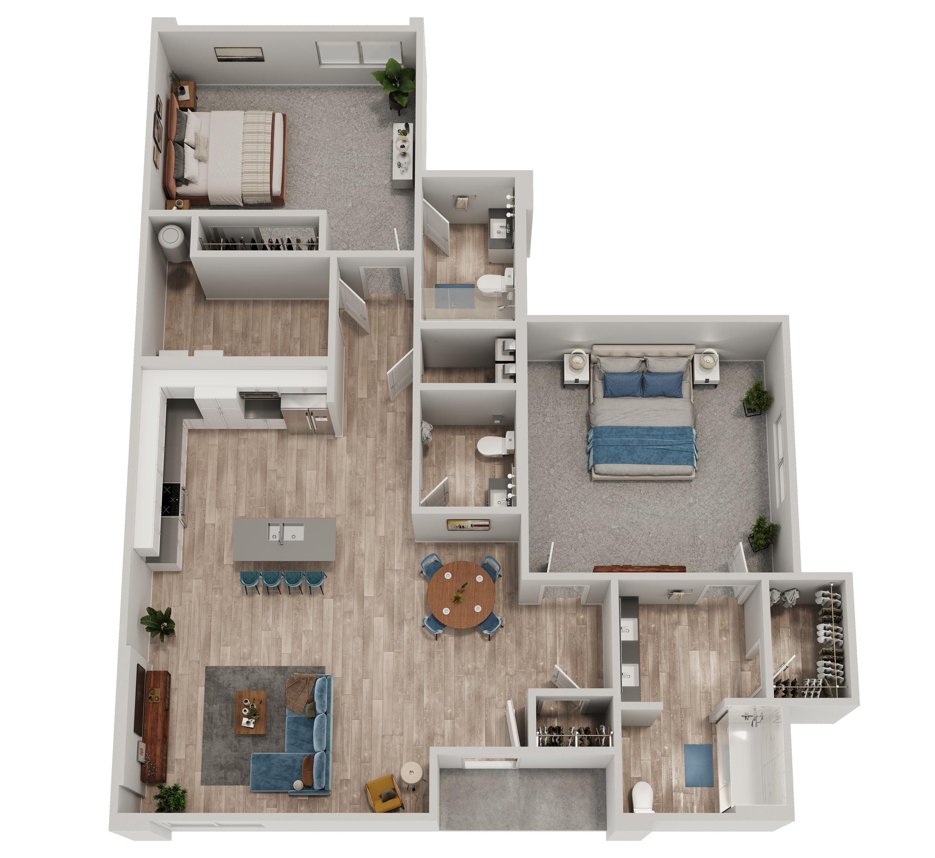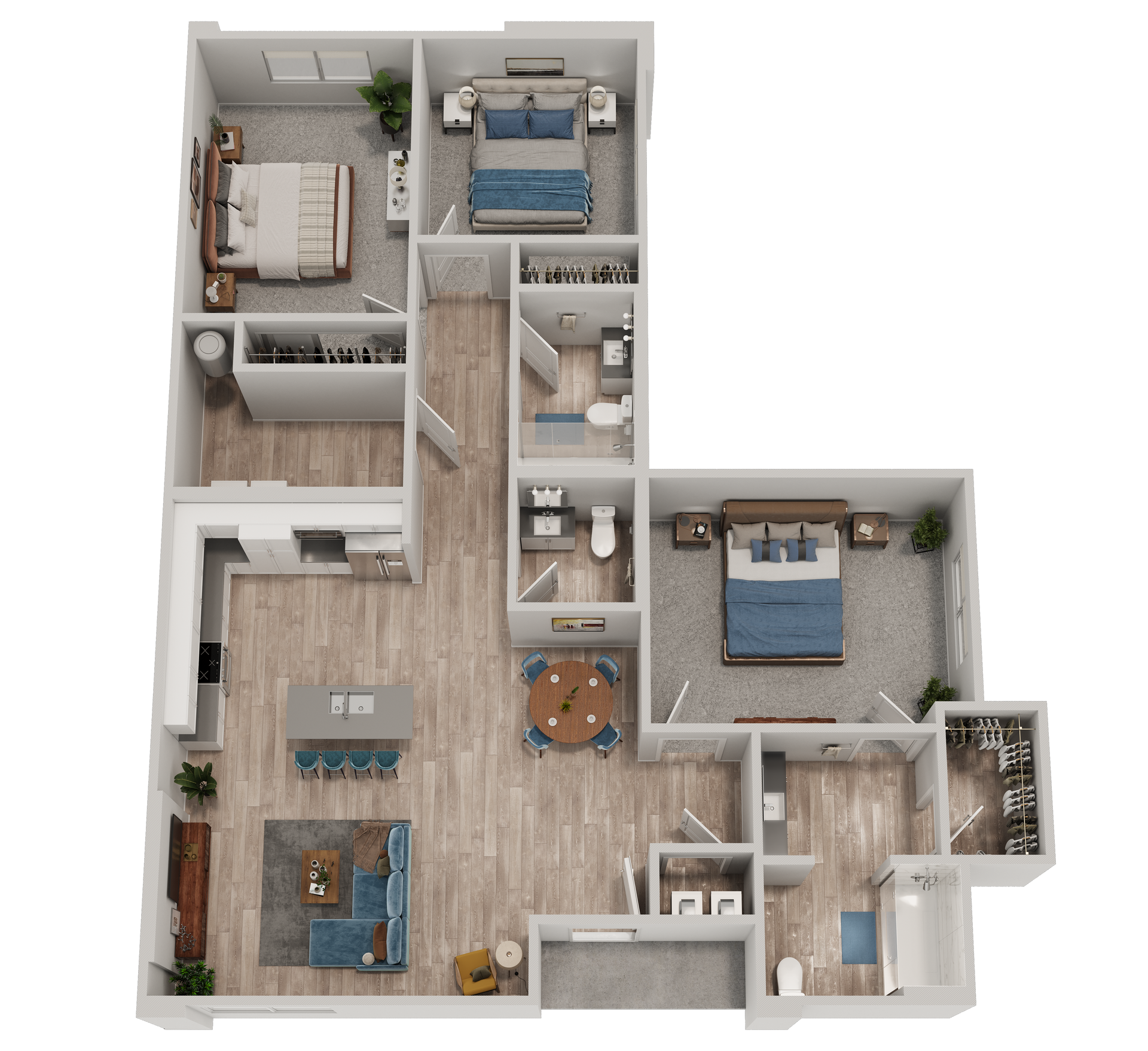 - Two and Three Bedroom Townhome Residences
